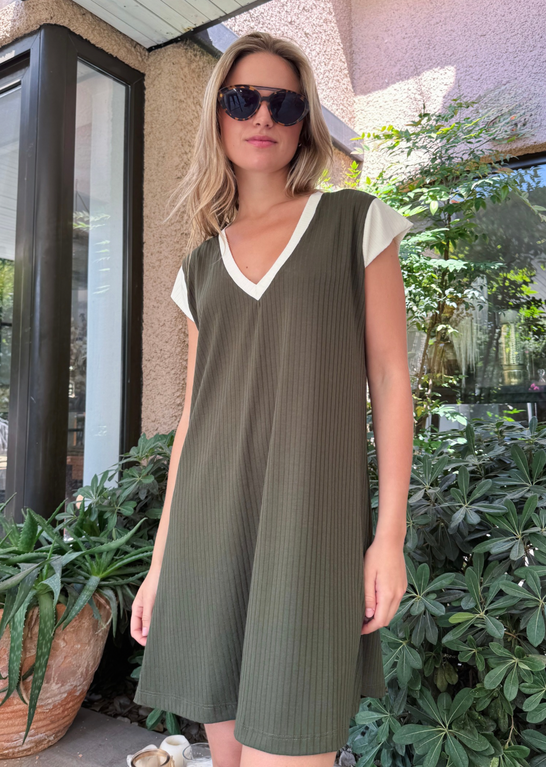 Vestido Cote | Olivo + pink