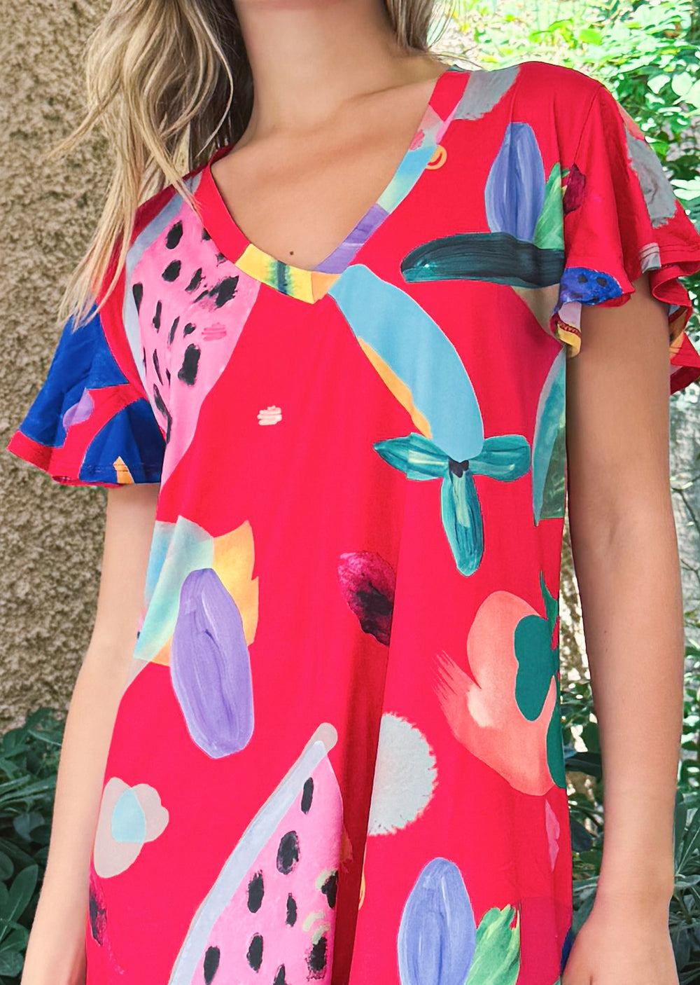 Vestido Ina | Hojas Fondo Rojo